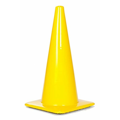 Yellow traffic cones can be used to mark areas that present a slight risk but aren't an immediate danger. They’re meant to encourage individuals to proceed with caution and be aware of their surroundings. Because of this, they’re primarily used when live utility lines are being worked on, or to encourage drivers to yield for potential construction traffic. The all-vinyl construction assures durability and flexibility in all weather conditions. Long lasting brilliant fluorescent color provides high visibility protection.
