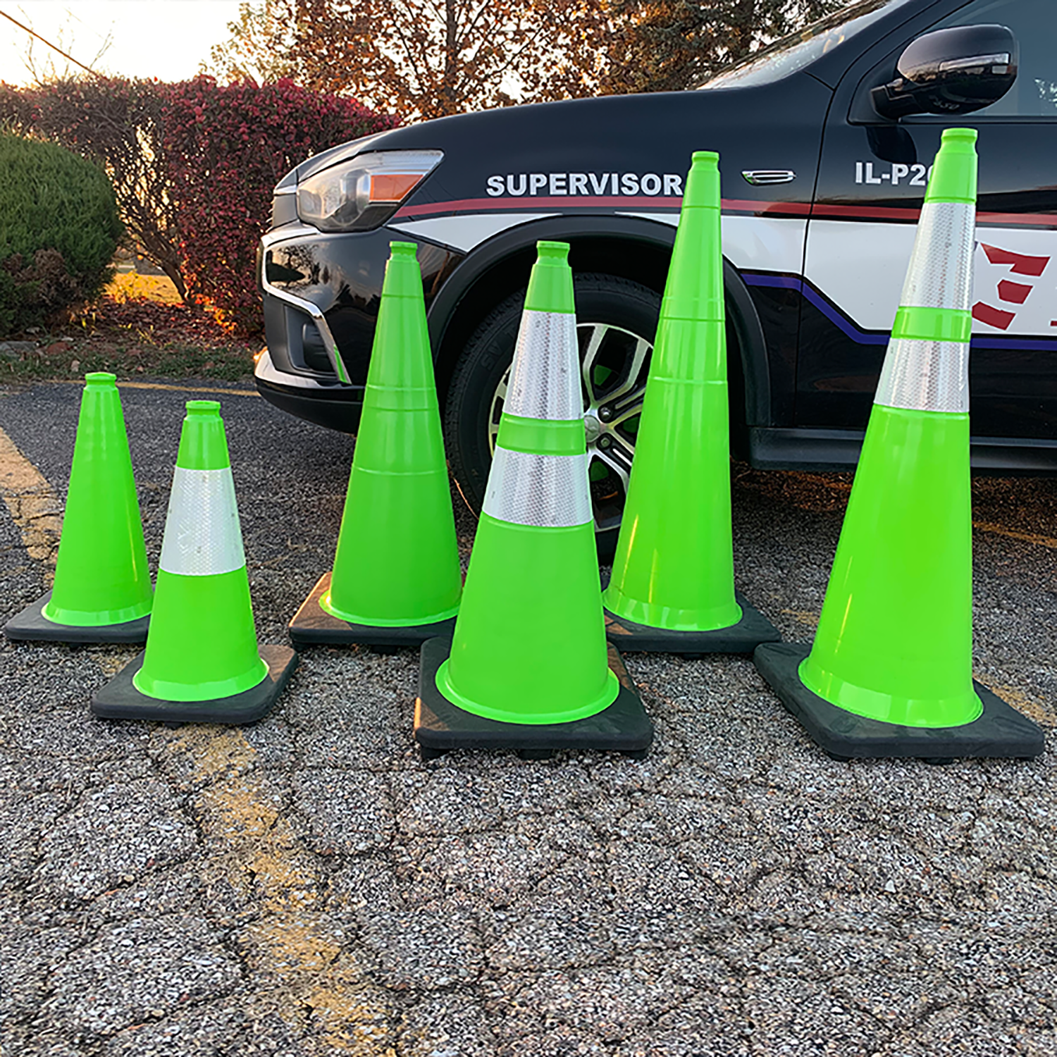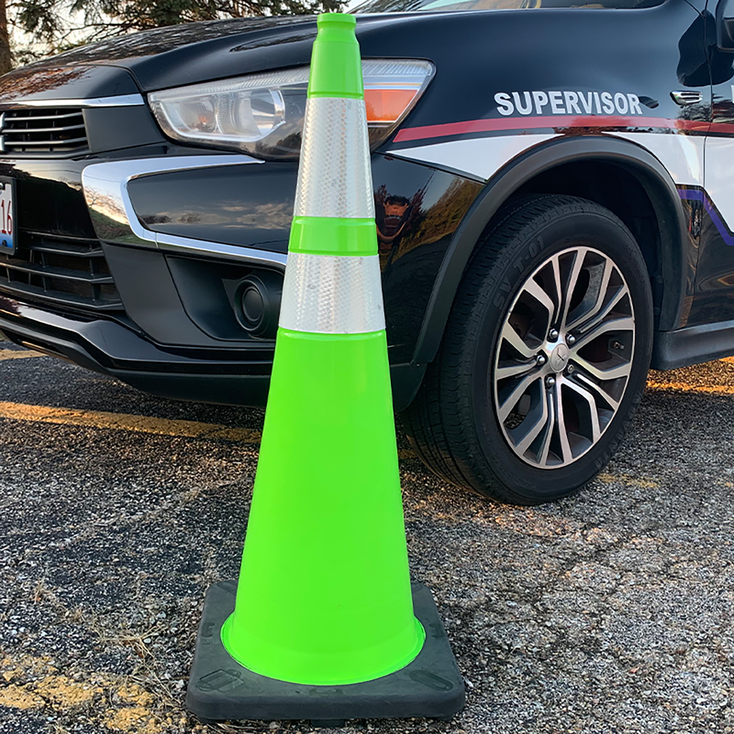 36" Lime Green Traffic Cone (Black Base) (4" & 6" Reflective Collars) - 10 lbs