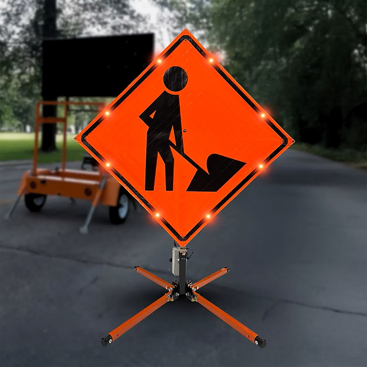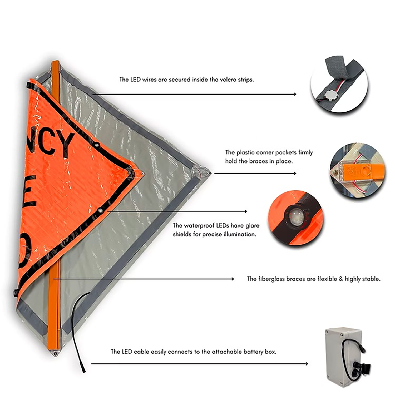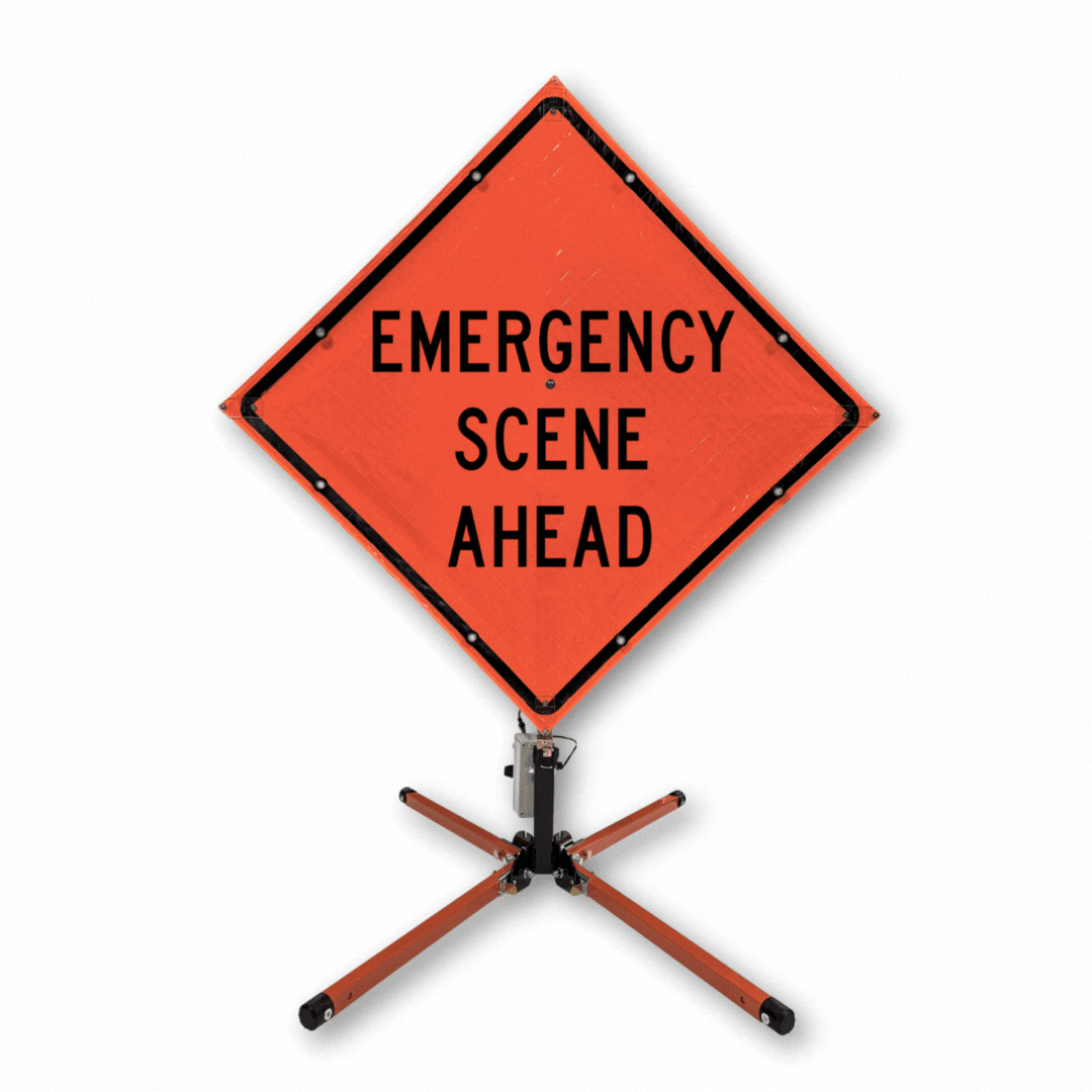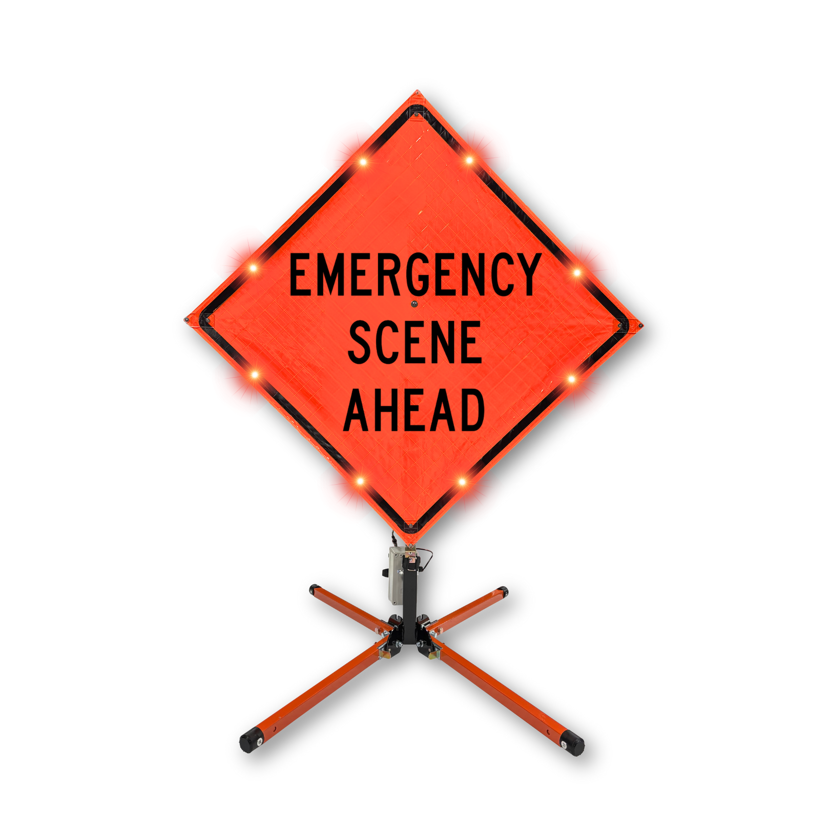 36" Reflective Orange EMERGENCY SCENE AHEAD LED Roll-Up Sign