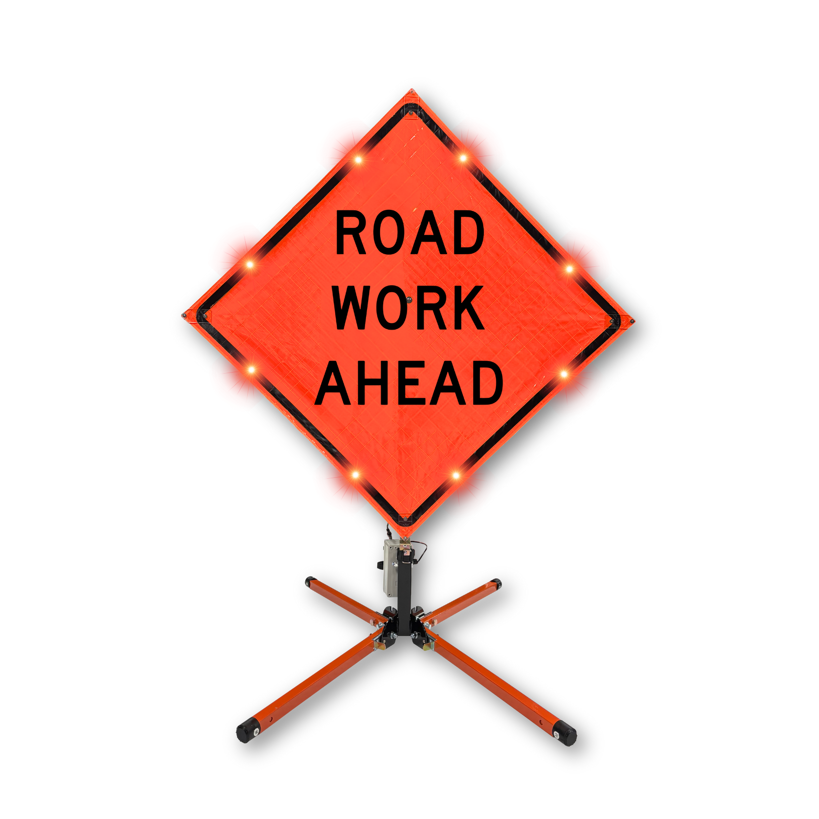 36" Reflective Orange ROAD WORK AHEAD LED Roll-Up Sign (W20-1)