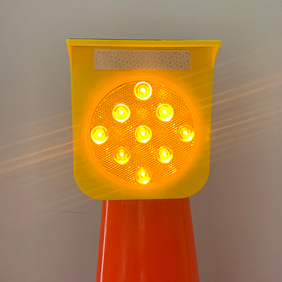 Our Amber Solar Traffic Cone Light dramatically increases the attention of drivers and pedestrians at night or dusk. Flashing single-sided light easily hangs on top of a standard traffic cone using integrated ring hook. A photosensor allows it to detect low light, automatically turning it on at night and shutting off during the day, prolonging battery life. Equipped with a solar panel on top, this light flashes up to 100 working hours when fully charged (which takes about 10 hours of sunlight).