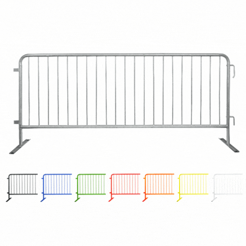 CrowdMaster offers multiple finishes. Choose from hot-dip galvanizing for superior weather resistance, or a wide selection of powder coated colors. Each barricade features 21 uprights inserted and welded directly into the frame for outstanding structural integrity. The removable feet (flat or bridge style) allow for fast stacking and flexible use across all surface types. Industry-standard interlocking hook-and-loop connections let you build a continuous barrier of any length.
