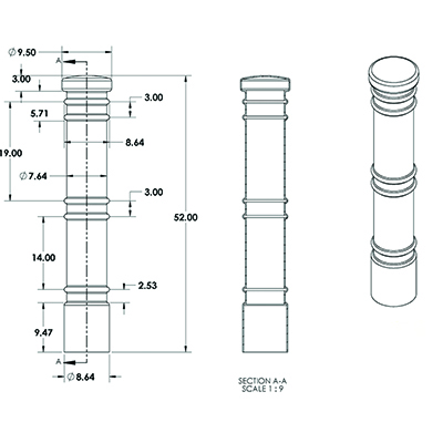 Create a uniform and professional appearance with the Metro Decorative Bollard Cover. Its distinguished multiple horizontal ring design will complement any commercial setting. Available in sizes to fit over 6" diameter pipe bollards. The Metro Bollard Cover is made of 1/4" thick, durable polyethylene thermoplastic. Forget yearly painting or maintenance after harsh weather, this decorative bollard can withstand it all.
