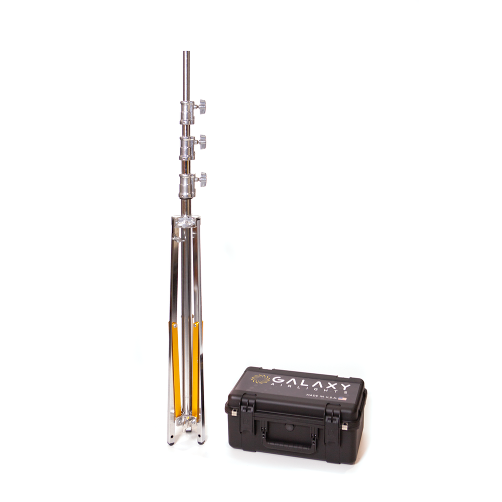 All Galaxy Air Lights units are 110V plug-and-play systems. They are designed for quick setup and immediate operation—simply plug into a standard power source or generator and you’re ready to go. Please note that these models are not battery-powered. A consistent 110V power supply is required for optimal performance. The chart below outlines the recommended minimum generator sizes for each model to ensure reliable operation and full brightness output.