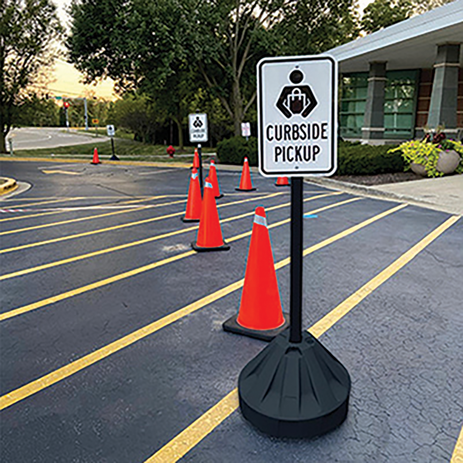 The Roll-A-Post Sign Base System is a great solution for applications where there is a need to move signs around a facility, school, airport, parking lot, or sidewalk. Durable, square plastic post with a plastic fillable base and wheels does not require painting or maintenance. Great for drive-thrus, curbside signs, handicap parking spots, no parking, or buy online pick-up areas. Commonly used when posts can’t be installed in the ground or sings need to be portable.