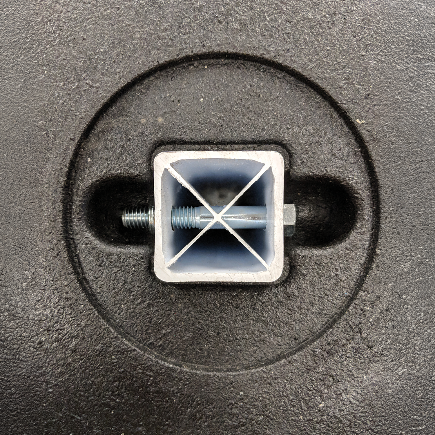 To secure post to base: 1 hex bolt and 1 locknut (included).