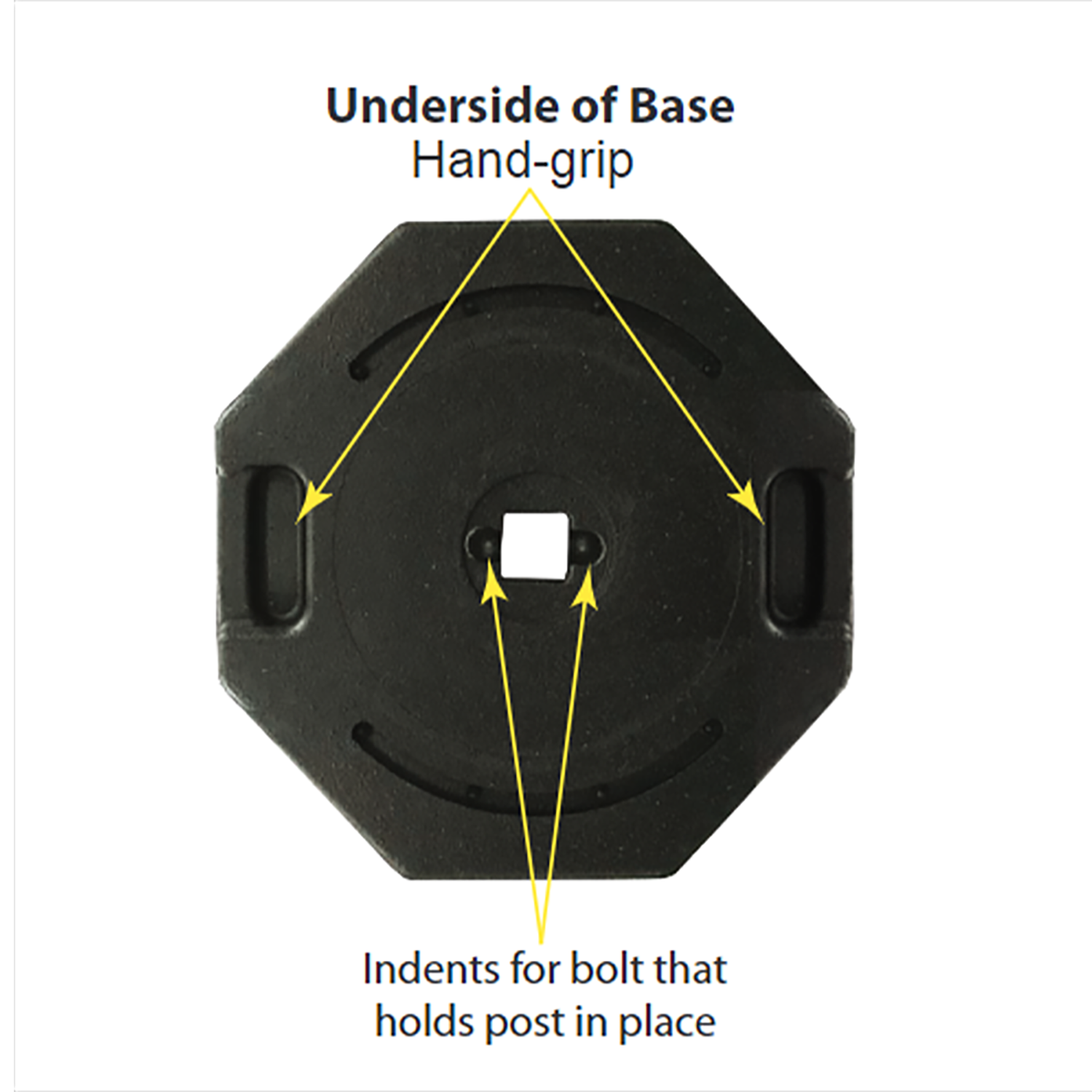Handgrips molded-in on underside of base for easy pick up.