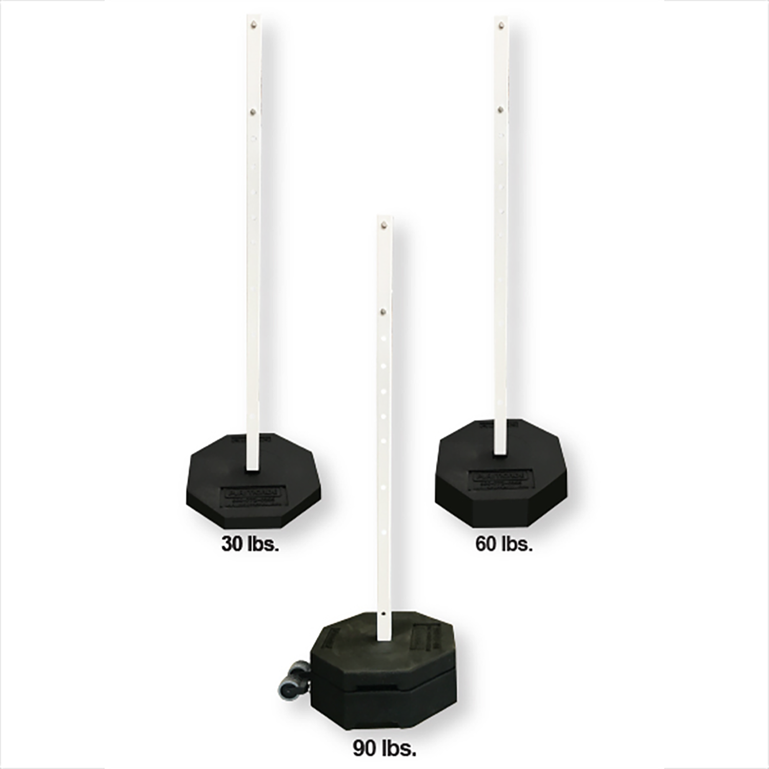 Kit option includes 60” white Power Post with base. Kit is sold with or without wheels attached to the base. Wheels cannot be added in the field. Zinc-plated mounting hardware for affixing signs to post included (signs sold separately).