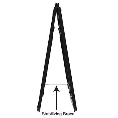 SimpoSign II is a lightweight, flexible solution to your temporary outdoor signage needs. Holds two 22" x 28" signs, one on each side, and an optional rider sign on top. With its Quick-Change™ feature, signs can be changed in and out in seconds. Stay Tabs™ ensure that the signs stay securely in place and grabber hinges will hold a sign rider on top. Sign stand has textured feet to help secure legs on smooth surfaces and add stability in soft ground and gravel. The stabilizing brace prevents accidental spreading or closing of the sign faces.