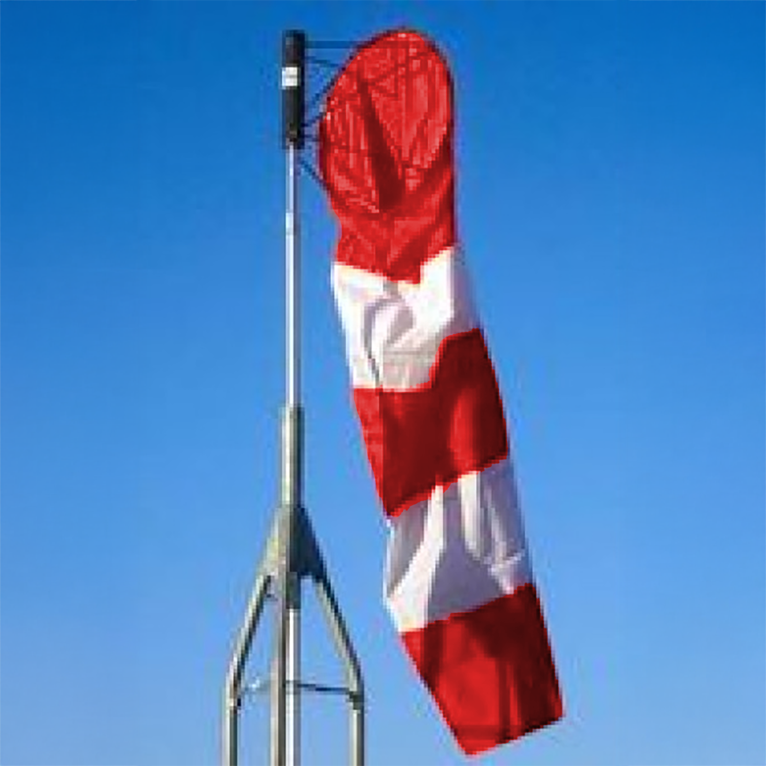 These Aerosock Brand Windsocks are made of premium durable nylon cloth. Treated with a water repellent and a UV inhibitor, nylon is fade-resistant and retains its color over time. Nylon offers windsock durability to outside elements and will not become rigid in cold, hot, or wet weather, always keeping the windsocks responsive. Often referred to as a “Canadian Windsock,” the red-white-red design makes it visible on a sunny day or gray sky.The windsocks have a double stitch in every seam with weather resistant nylon thread. A 400 lbs. tensile strength webbing is added in the throat for reinforcement, and the brass grommets are evenly spaced, allowing for the standard lace-on or tie wrap method of attachment. Tie wraps (included) are used to secure the mouth of the windsock to its metal swivel frame or basket (not included)..
