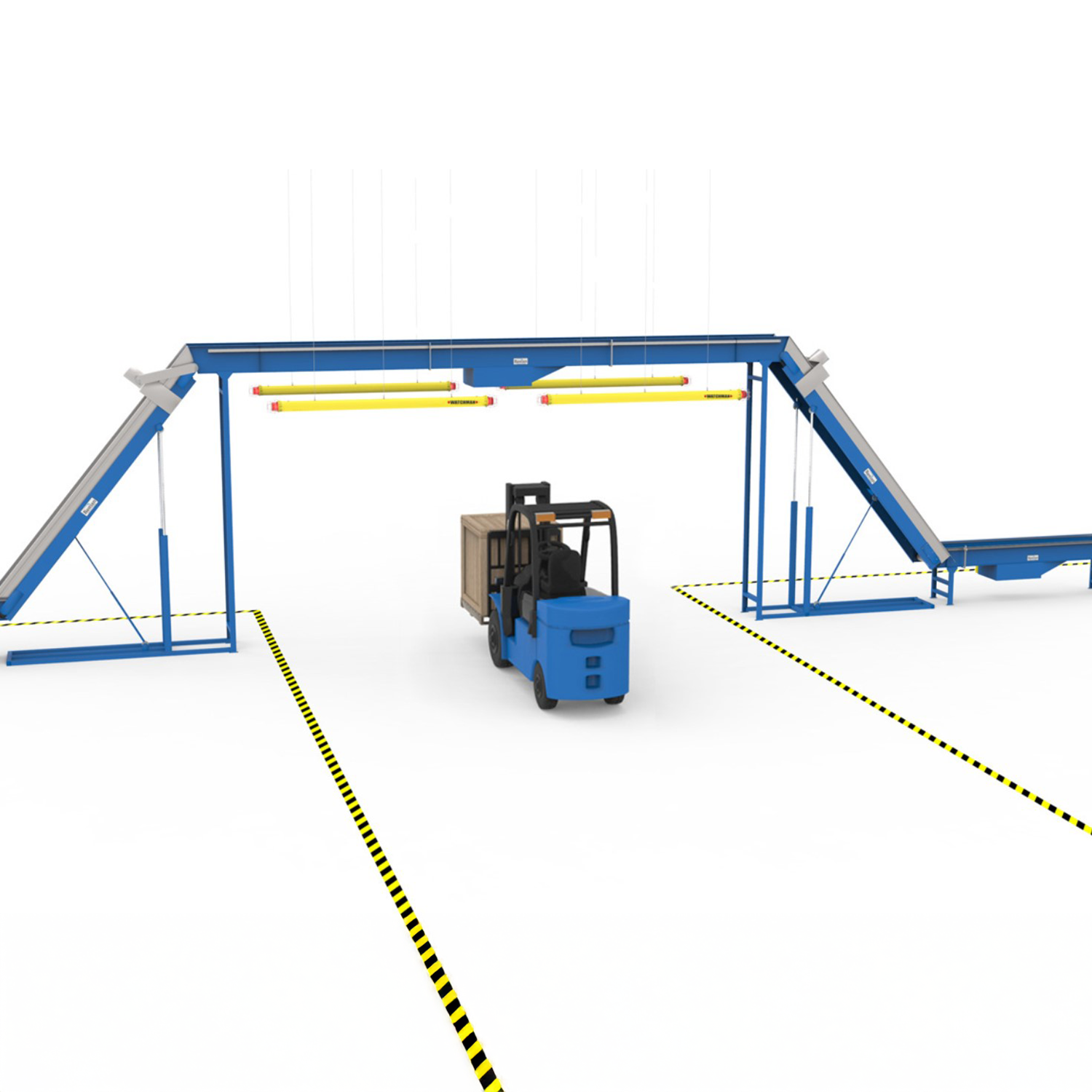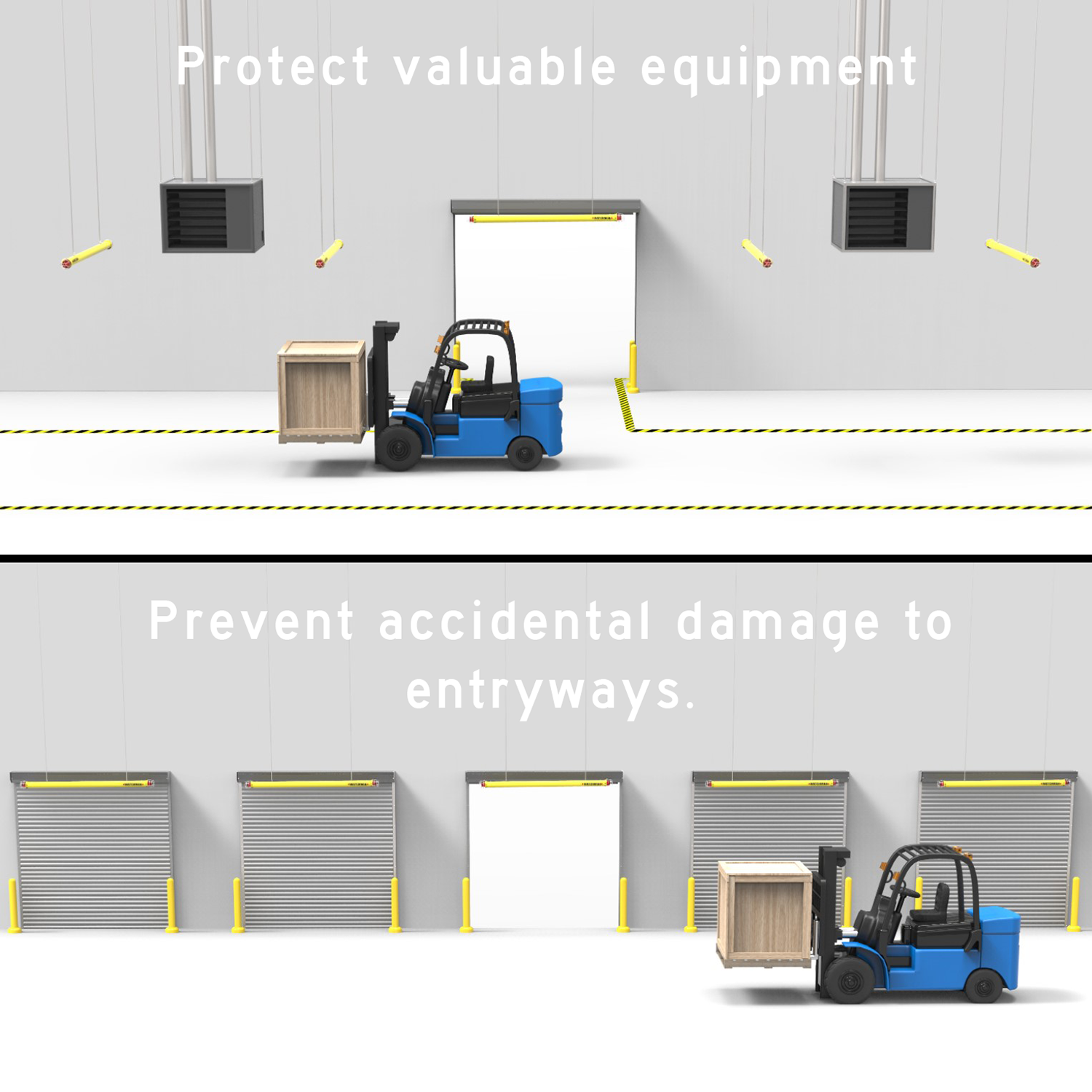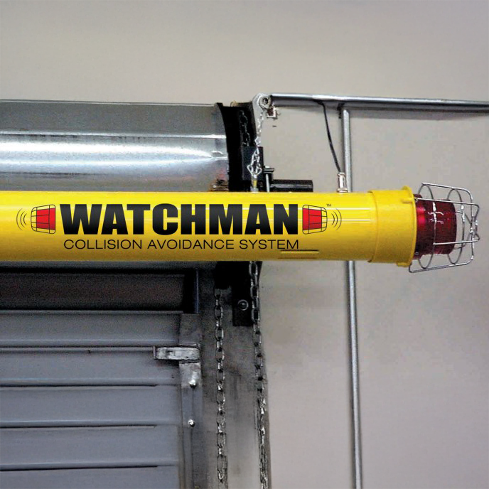 Stop forklift accidents before they occur. The Watchman is a low clearance alarm bar that warns forklift operators and management of potential collisions between forklifts and overhead doors and fixtures before they happen. Contact with the Watchman triggers a loud siren and flashing red lights, providing a warning to the forklift driver. In addition to overhead doors, the Watchman can be used to protect conveyor systems, low overhead passageways and catwalks, pallet racks, lifts, canopies, conveyors, walls, pipes, chemical lines, sprinklers, heaters, ducting, and other overhead fixtures. Make forklift and employee safety a priority at your facility with the Watchman.